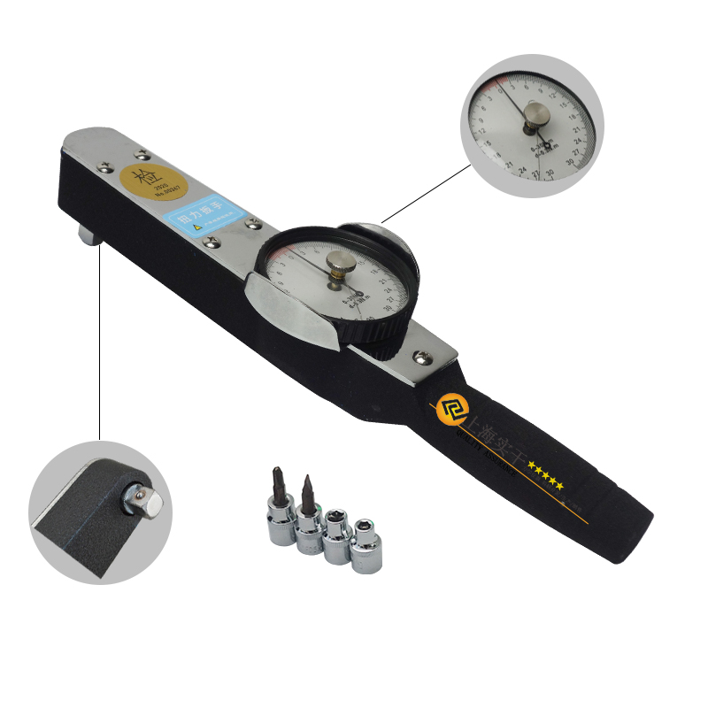 表盤扭力扳手主要用于對螺紋緊固力矩的檢測。 指示表盤扭力扳手帶有公制Nm和英制Ibf.in雙刻度顯示。范圍從0Nm-2800Nm,可測量范圍廣。扳手頭部為固定式,可接套筒使用。 表盤扭力扳手主要特點: 可換頭表盤扭力扳手主要用于對螺紋緊固力矩的檢測。